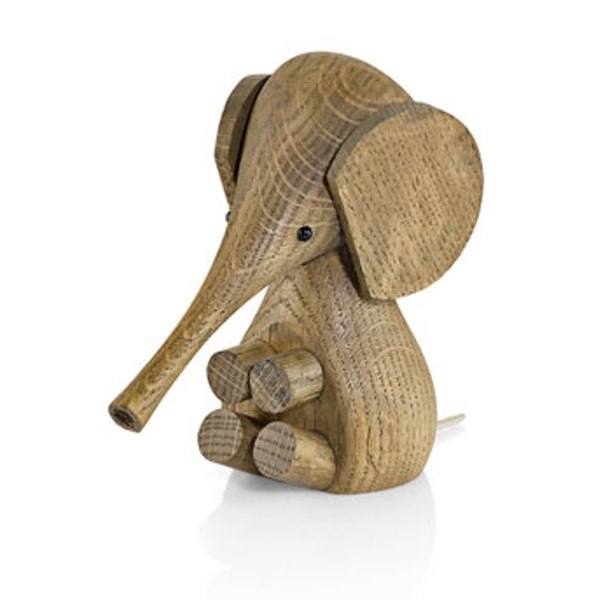 Lucie Kaas elefant i røget eg. Baby elefanten blev designet af Gunnar Flørning i 1961. Sød og betagende elefant der med sin lange snabel og store ører ikke er til at stå for.