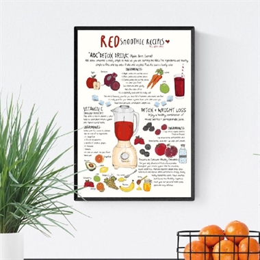 Få inspiration til en sund og rød smoothie. Nyd den smukke og klassiske illustration fra Mouse and Pen. De klassiske illustrationer er tegnet af Helle Dannemarre.